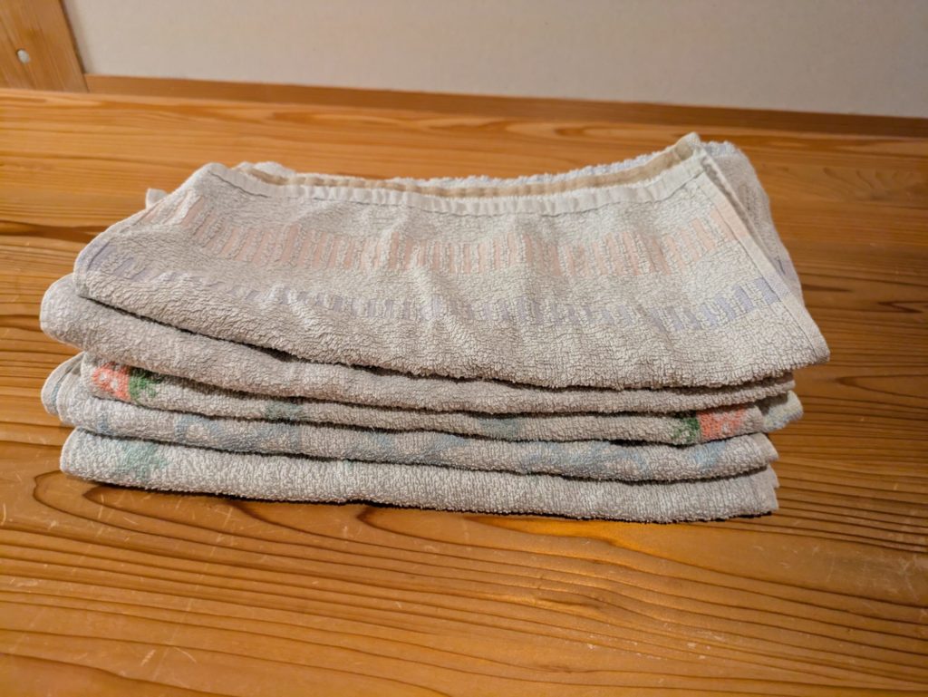 - タオルは「多すぎるかな?」と思うくらい持っていく。 特に体を拭く用、ギアを拭く用など、用途別に用意する必要はありません。とにかく多量にあることが大事。量さえあれば、あとはなんとかなります。