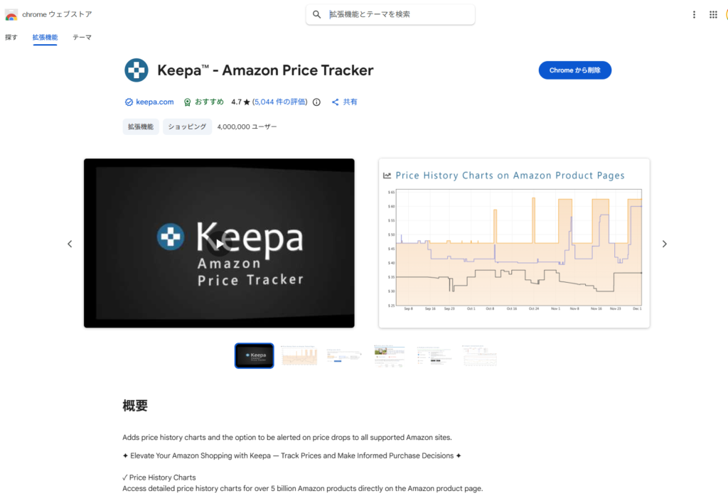 - 「chrome ウェブストア」で「Keepa」と検索する。